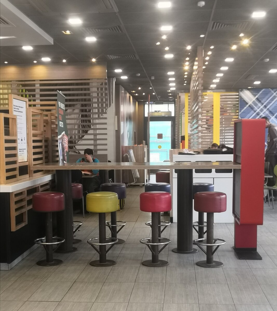 Сегодня плановый 4-часовой слот, который начинается во "Вкусно - и точка". Пока жду заказ, делаю дежурную фотку. И только потом замечаю, что на неё попал нетипичный посетитель с книгой: Ожидание затягивается, уже прошло 15 минут. Пишу в поддержку - предупреждаю, что заказ задерживается по вине ресторана, а не я вдруг решила тут кофе попить. Как показал опыт дочки, о таких вещах важно сигнализировать, иначе курьеру может прилететь ограничение из-за задержек. Наконец получаю заказ и отношу его... в маникюрный салон. По пути попадается забавная табличка: Дальше небольшая доставка из кафе в офис. На обратном пути, на светофоре, пересекаемся с дочкой, которая несёт свои заказы. Она меня сфотала издали: Моя следующая точка - Cannam Chicken. Пока жду заказ, обращаю внимание на форму солонки: В подъезде у клиентки смайлик: После этой доставки было затишье минут на 10, потом пришёл заказ в "Перекрёсток". Доставки из супермаркетов нередко сулят многокомпонентные и тяжёлые продуктовые наборы: