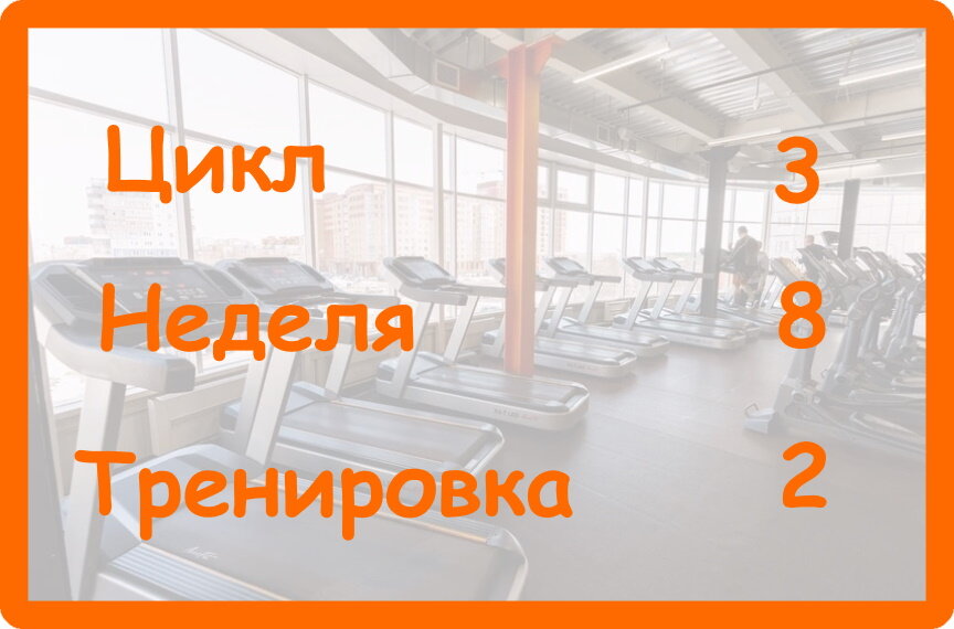 Тренировка 2 "верх" 1. Кардио 10 минут 2. Тяга штанги в наклоне обратным хватом 20 кг 12 повторов 2. Жим от груди в тренажере 5+5 кг 10 повторов 3. Кардио 5 минут 4. Подтягивания гравитрон 47 кг 8 повторов 4. Пулловер лежа 10 кг 10 повторов 5. Кардио 5 минут 6. Жим штанги стоя 15 кг 10 повторов 6. Французский жим 10 кг 10 повторов 7. Кардио 5 минут 8. Горизонтальная тяга 34 кг 10 повторов 8. Разведение гантелей 7,5 кг 10 повторов 9. Кардио 5 минут 10. Тяга сверху одной рукой 20 кг 12 повторов 10. Сведение рук в тренажере 32 кг 12 повторов 11. Кардио 10 минут Со свободными весами - 6 упражнений В тренажерах - 4 упражнения. На верх - 8. Допы - 2. Сегодня как-то особенно не хотелось вот это вот кардио между суперсетами. Не понимаю его смысл, хоть тресни... но выполнила, что делать-то... Очень давно не тянула штангу в наклоне, тем более, обратным хватом. Предпочитаю Т-штангу или гирю в упоре и, такое ощущение, что деградировала, тянуть спиной получалось примерно никак. И это я еще вес взял