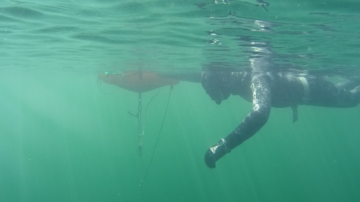 Естественно в условиях ограниченной видимости мы ныряем ВСЕГДА с лэньярдом (страховочный трос, который пристегивается к основному тросу) и с инструктором по фридайвингу или опытным напарником, который успешно окончил курсы любой признанной федерации фридайвинга.