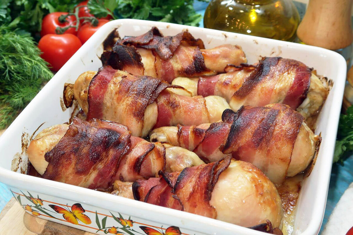 Очень нежные и сочные куриные ножки в беконе с румяной и хрустящей корочкой