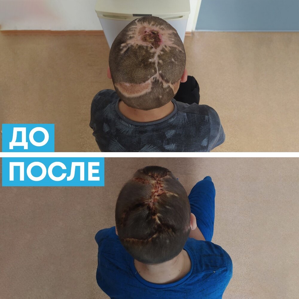 «После нападения собак мальчик долго лежал у нас в отделении. Была полностью содрана кожа головы, практически не было надкостницы – просто голая кость, пришлось удалять кортикальную пластинку и наращивать грануляциями. Вследствие нападения собак, у ребенка появилась большая посттравматическая алопеция», – рассказывает заведующий отделением гнойной хирургии ЧОДКБ Михаил Погорелов.
