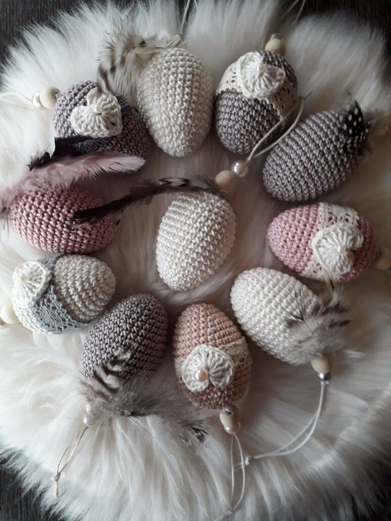 Привет! Совсем скоро самый светлый праздник в году. Предлагаю подготовиться к нему основательно и связать красивый декор. К некоторым изделиям будут ссылки на МК. Пасхальное яйцо Ушки У вас может получиться такой милый зайка. Схемы примерные, количество рядов корректируйте. Варианты яиц с вышивкой Шапочки на яйца Украшения для веток. Просто и стильно Описания 1. Зайчики - подвески. Ссылка на описание Я советую зайти на сайт дропс в раздел домашнего декора. Там очень много всего для различного рода праздников. 2. Цыпленок. Ссылка на описание 3. Курочка. Ссылка на описание 4. Корзинки для пасхальных яиц. Ссылка на описание На самом деле, вариантов декора множество, всё зависит от вашей фантазии. В статье представлена лишь малая часть того, что можно связать. Отличной идеей будет заняться вязанием декора вместе с детьми. Например, связать зайку-подвеску, вяжется легко и быстро. Уверена, детям такое развлечение придется по душе). Ставьте лайки, пишите комментарии, делитесь своими ва
