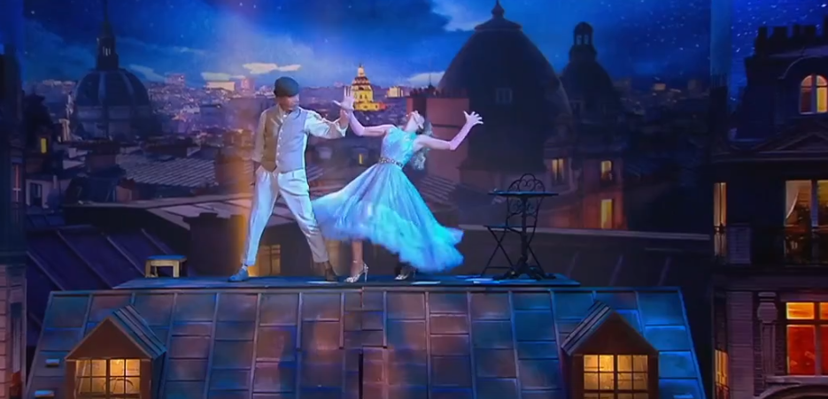 Валерий Яременко и Елена Максимова — «Танго на крыше», восхитительно красиво. Как будто посмотрели короткометражный мюзикл. Все шикарно, и танец, и вокал, и декорации, и актерская игра.