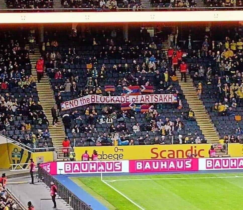 «Դադարեցրեք Արցախի շրջափակումը». Արցախի և ՀՀ դրոշները՝ Շվեդիա-Ադրբեջան խաղում