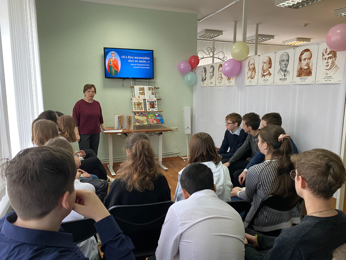 В 2023 году исполняется 1035 лет с того времени, как Русь приняла Святое Крещение. Этому важнейшему историческому событию было посвящено духовное путешествие в историю праздника «И в Русь милосердия внёс он закон…». В Тучковскую детскую библиотеку были приглашены учащиеся 7 "Г" класса ТСШ№3.