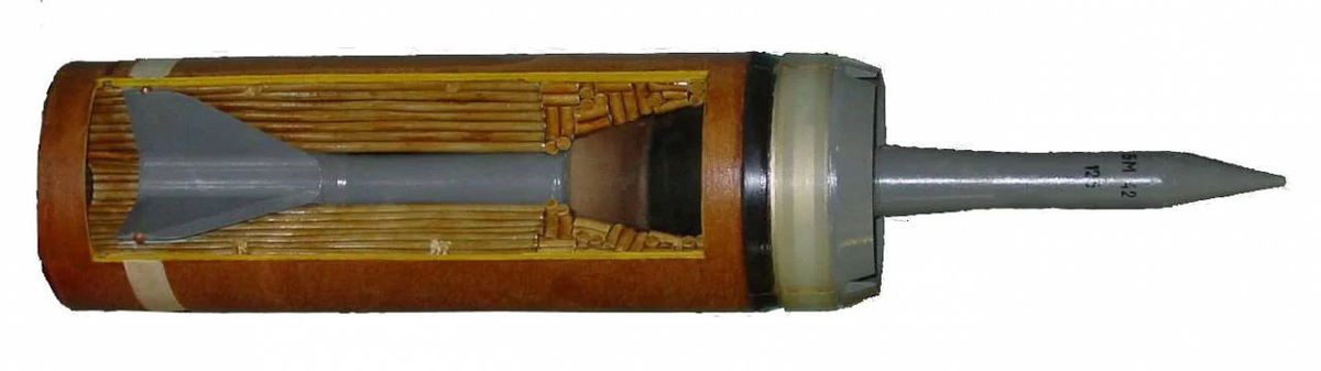 Снаряд имеет сложную конструкцию: в головной части стреловидного тела снаряда установлен баллистический наконечник, под которым располагается бронебойный колпачок, за бронебойным колпачком установлен бронебойный демпфер, который позволяет хорошо «закуситься» снаряду при столкновении с преградой под углом, а так же играет большую роль в пробитии. За демпфером установлены два сердечника из вольфрамового сплава, которые удерживаются внутри рубашкой из легкосплавного металла. Рубашка плавится при столкновении снаряда с преградой, высвобождая сердечники. Тело снаряда имеет ведущее устройство разжимного типа. В хвостовой части снаряда установлен стабилизатор в виде оперения с пятью лопастями, в основании стабилизатора установлен трассер. Автоматы заряжания советских танков Т-72/80/90 ограничивают длину БОПС до 740 мм, а именно длина сердечника является ключевым параметром, обеспечивающим повышение бронепробиваемости[3]. Новое танковое орудие 2А82 может вести стрельбу БОПС 3БМ69 «Вакуум-1» и