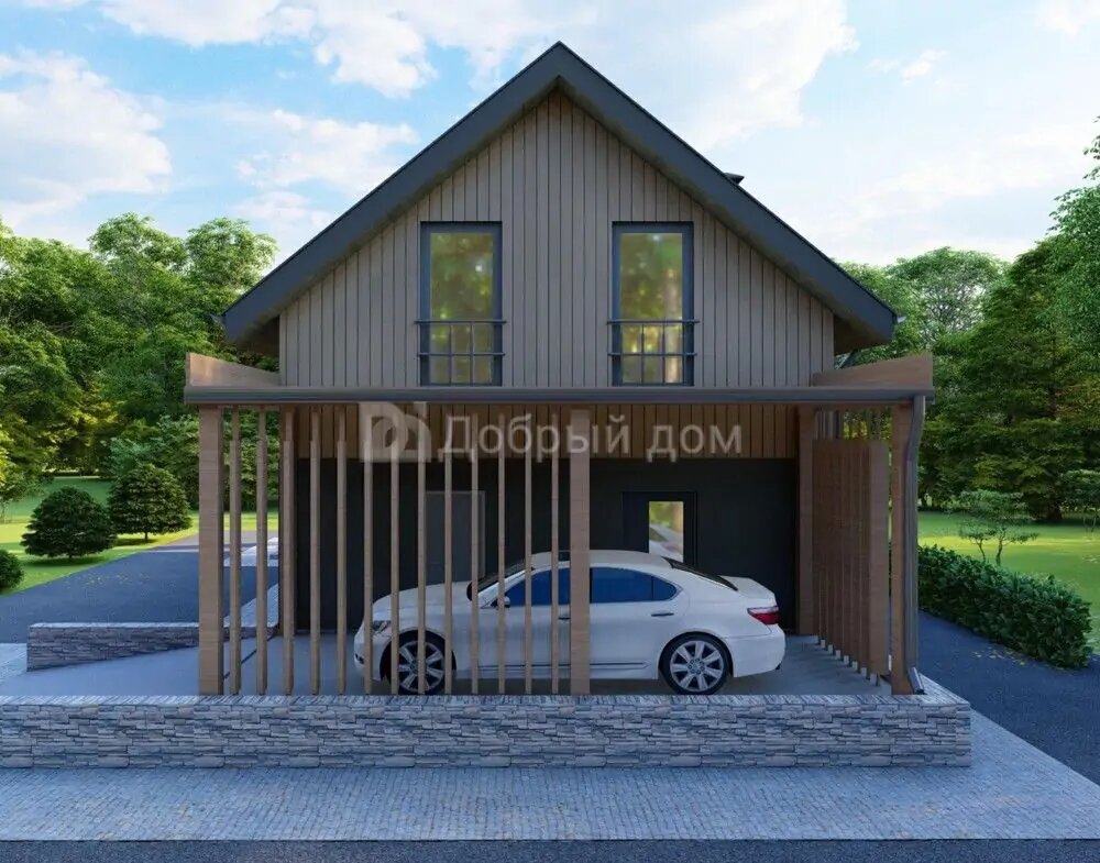 Проект двухэтажного дома AS-2567-3 из газобетона с террасой и навесом для машины