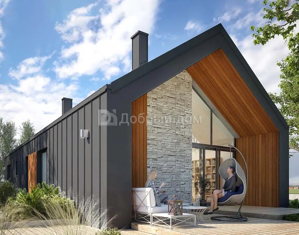 Вам стоит обратить внимание на проект AS-2727 - одноэтажный дом с двускатной крышей и панорамными окнами отлично подойдёт семье из 3 человек.