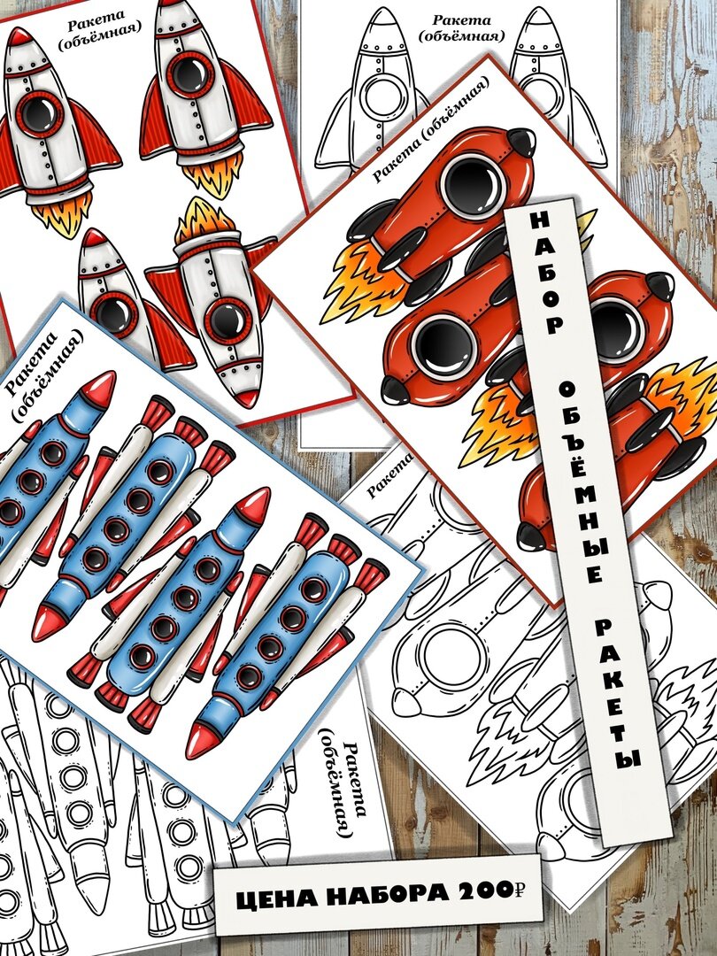 1.Объёмные ракеты-это и поделка, и декор для обложки открытки, и украшение праздничного тематического стенда или стенгазеты. Ракеты выходят достаточно крупными. Даже, как игрушку можно использовать. 2.Флажки. Первый набор- пришельцы. Подойдут не только для дня космонавтики, но и для дня рождения с подходящей тематикой. 3.Флажки космос. это двусторонние флажки с космическими картинками. 4.Флажки планеты. Сзади на флажках названия планет, так что можно не только помещение украсить, но и тему изучить. В наборе есть планеты с глазками, а есть без. И они крупнее других флажков. 5.Объёмные фигурки. Эти смешные пришельцы потом могут и на новогоднюю ёлку отправиться. 6.Кроме пришельцев есть ещё набор с космонавтами и планетами. Выйдут вот такие космонавты с космическим кораблём. И набор планет. Получится такой макет :) 7.Набор для стенда или стенгазеты. В наборе есть информация про праздник, картинки. И много космических фактов. У меня вот так скомпановалась стенгазета. 8.Рамки с космическими