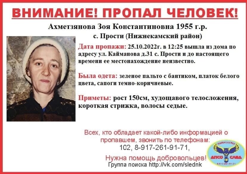В Нижнекамске в середине декабря пропал 35-летний . Он вышел из дома по улице Гагарина и перестал выходить на связь. Спустя больше трех месяцев обнаружили тело мужчины. Соболезнования родным выразили волонтеры добровольного поисково-спасательного отряда «След» в своих аккаунтах в соцсетях. Как сообщил KazanFirst источник, знакомый с произошедшим, звонок поступил в дежурную часть полиции от местного жителя накануне. Тело мужчины находилось по улице Менделеева в районе гаражей. Причину смерти установят после проведения судебно-медицинской экспертизы. Напомним, в Нижнекамске до сих пор не нашли . Она вышла из дома по улице Кайманова в селе Прости 25 октября и перестала выходить на связь с родными.