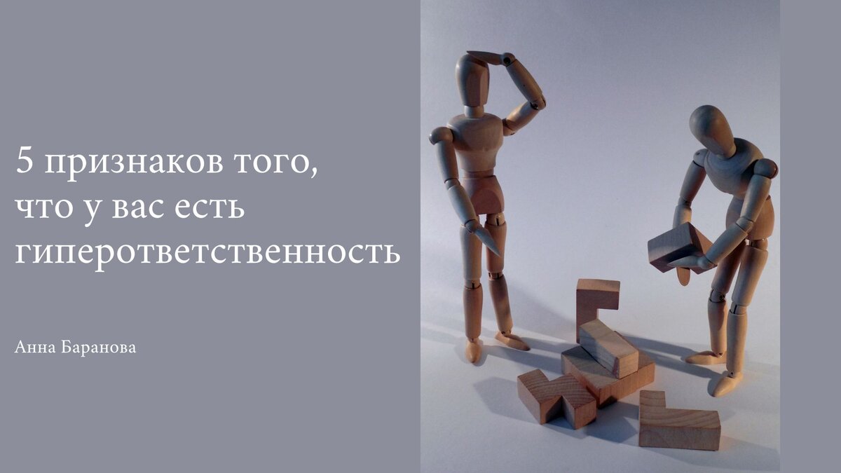 Дорогие подписчики и гости канала, сегодня поговорим про гиперответственность и ее признаки. Когда-то я столкнулась с тем, что страдаю от гиперответственности. Мне приходилось тратить очень много сил и энергии, чтобы проконтролировать все, происходящее вокруг меня. Я не могла никого попросить о помощи, так как мне казалось, что никто другой не сможет выполнить работу хорошо. Когда мне что-то поручали сделать, я могла вымерять каждый шаг, постоянно что-то проверять. Это выматывало меня очень сильно. Кроме того, мои отношения с окружающими могли страдать от того, что я нервничала, пыталась и их переделать, изменить. Тот, кто страдает от гиперответственности, знает, как это непросто. Одна моя знакомая, даже когда имеет возможность закончить работу пораньше, не может себе этого позволить. Она переживает, что если уйдет, то какие-то процессы пойдут не так. Бывали случаи в практике, когда у клиентов из-за гиперответственности не складывались личные отношения. Приходилось многое контролир