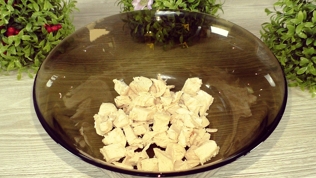 Берём куриное филе: варёное, запечённое или жареное.