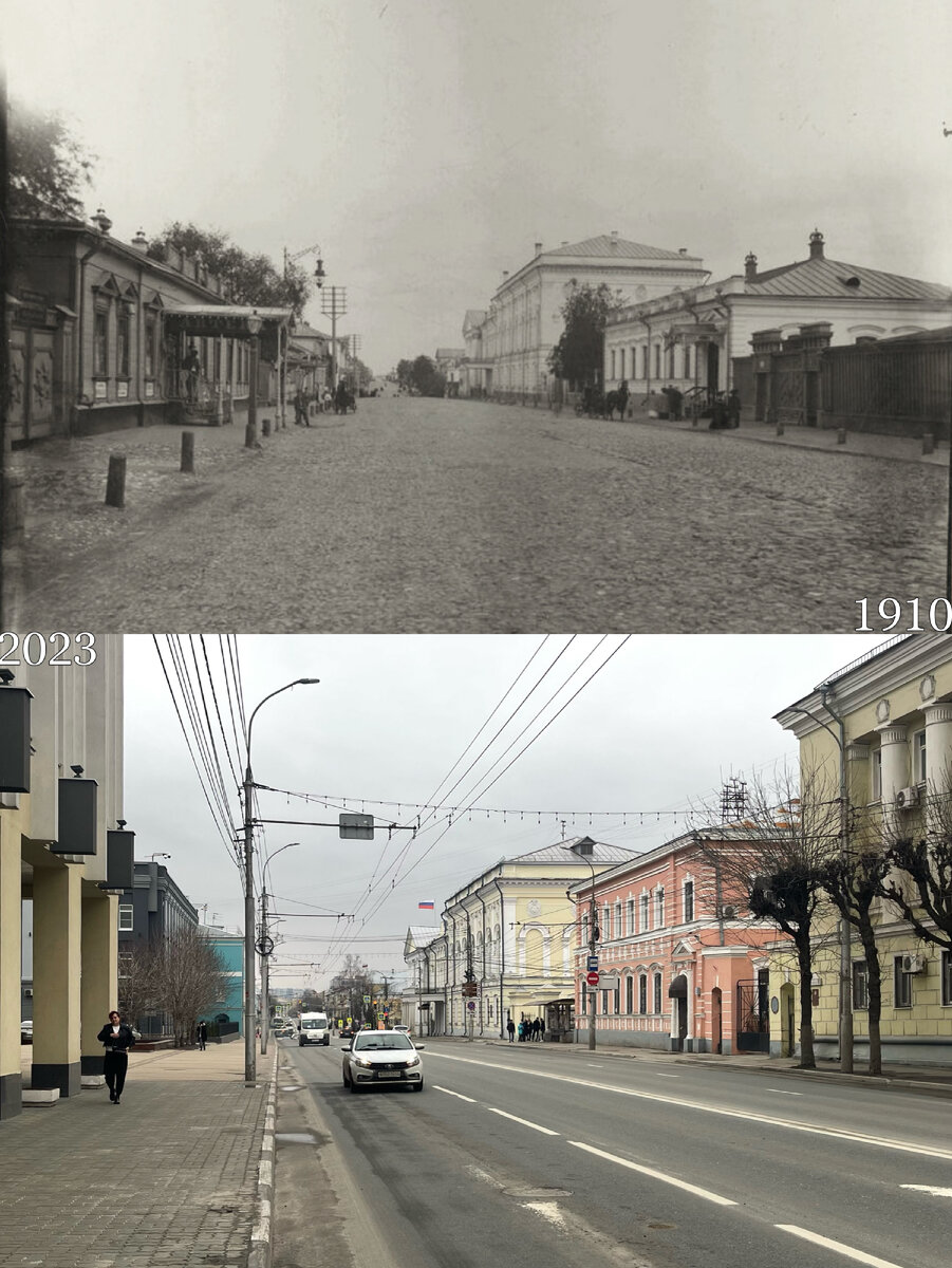 Очень жалею, что до Рязани я не доехал раньше. Этот город меня прям очень впечатлил. Здесь во многих местах сохранилась гармоничная старинная застройка. Мне кажется, что это один из лучших городов по сохранности именно цельной исторической среды. А еще тут огромное количество интересных музеев. Поэтому по улицам города я сумел погулять не так много времени, но значит есть повод вернуться! Делюсь с вами кадрами было/стало, которые я успел сделать за время прогулки. 1) Улица Астраханская (Ленина) В городе есть две основные магистрали: это улица Ленина и улица Соборная, которая затем переходит в Первомайский проспект. Вдоль этих улиц как раз и сохранилось очень много старых зданий. Как мне рассказали местные, многие деревянные небольшие дома 90-е годы не пережили, но вот каменные дошли до нас в прекрасном состоянии. Фасады содержатся прекрасно. Единственное, что напрягает – это количество проводов в воздухе. Но это все поправимо. 2) Улица Соборная Отдельно отмечу, что Рязань очень зел