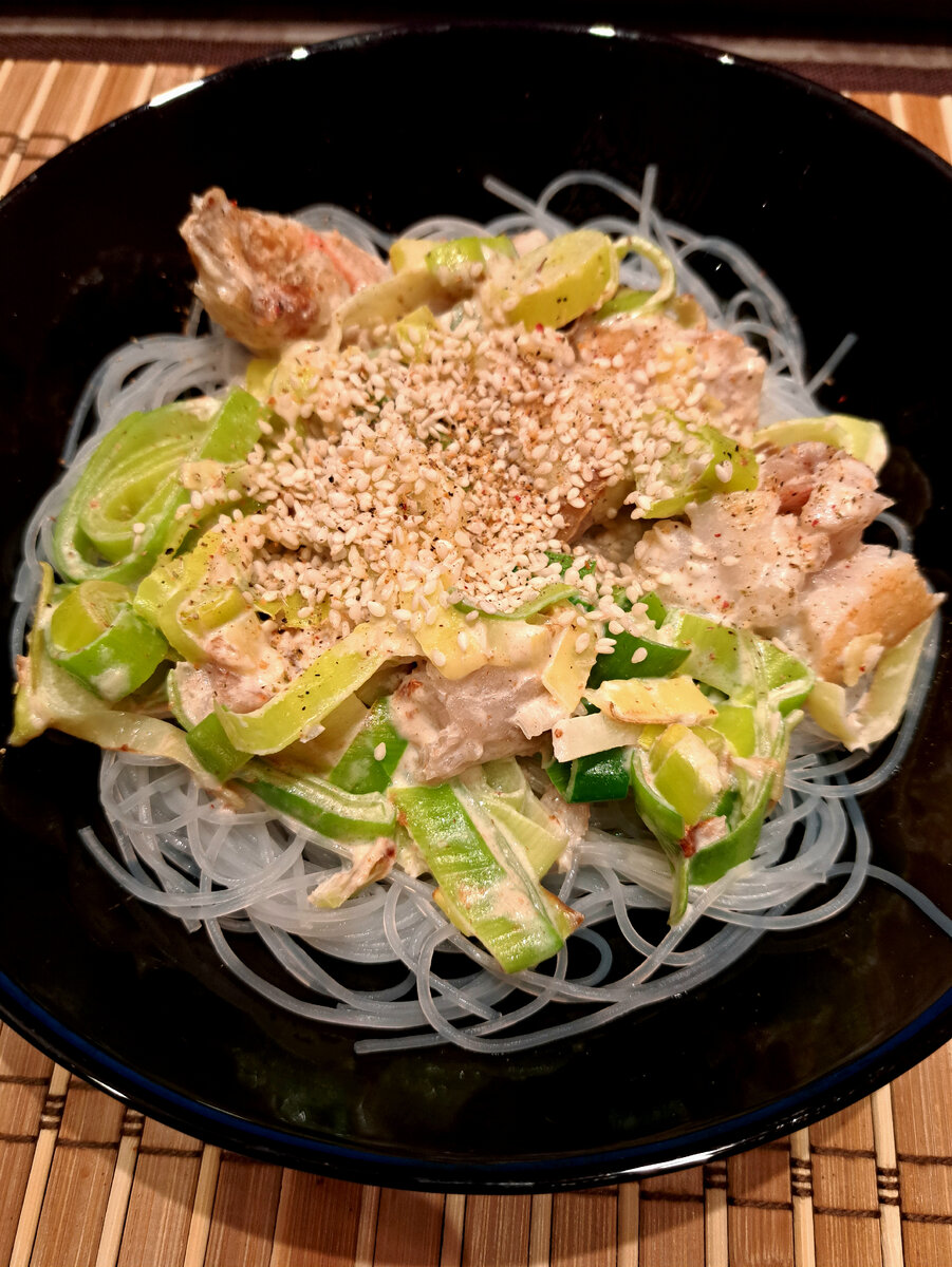 🐟Ингредиенты: -окунь 200 гр -фунчеза 200гр -соль -сливки 10-20% 70 мл -лук парей 100гр -кунжут 🐟Приготовление: 1. Фунчозу выложить в глубокую тарелку, залить кипятком, немного посолить. Оставить на минут 20 2. Окунь нарезать кубиками, лук парей кольцами, выложить на сковороду, предварительно наливаем на сковороду подсолнечное масло (или топленое) 3. Обжарить рыбу около 7 минут, посолить, добавить специи и сливки, оставить ещё на 10 минут 4. К готовой рыбе выкладываем фунчозу, всё перемешиваем 5. При подаче можно добавить кунжут Фунчеза готова! Приятного аппетита! Если Вам нравятся мои рецепты и статьи, буду рада Вашей подписке на канал! Буду удивлять Вас новыми рецептами и советами🥰