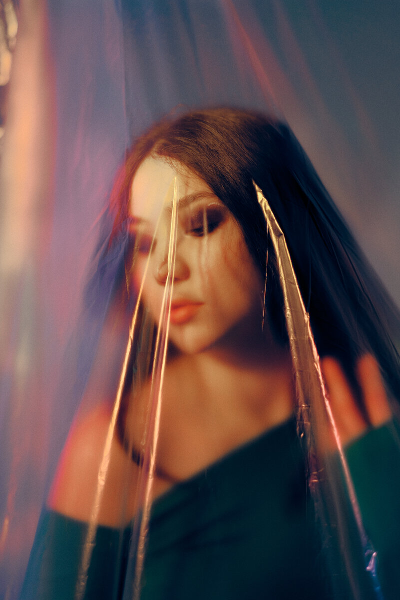Когда снимаешь в одних и тех же условиях, используешь одни и те же схемы света, невольно задумываешься о том, что тебе все надоело и хочется привнести чего-то нового в свое творчество. Я стараюсь каждую свою съёмку делать что-то новое, экспериментировать, чтобы не застревать на одном и том же, чтобы дальше развиваться и получать удовольствие от процесса. Например, в этой съемке я попробовала сочетать импульсный свет и постоянный. Добавила цветных фильтров и плёнки, чтобы получился интересный эффект на фотографиях. Свет с помощью цветных фильтров отражался на пленке и преломлялся через неё, давая необычные блики. Вот так с помощью двух вещей: пленки и цветного света, у меня получилось разнообразить съёмку. Экспериментируйте и не бойтесь пробовать новое! Всем успехов 😊