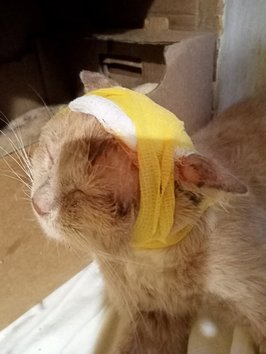 🐈 ФРОЛ - тяжело, но мы лечимся. Одной волонтеру, конечно удержать этого парня, очень тяжело. Вчера попыталась убрать отмершую кожу по краю раны. Не дал. Пришлось просто залить хлоргиксидином, дать высохнуть, потом бетодином ну и Левомеколь. И ОПЯТЬ ПОВЯЗКА. Вчера был третий день лечения. Начали гноиться глаза тоже обрабатываем. Делаем антибиотик (укол в пухнастенькую....). Ну, а потом Фрол кушает, с таким удовольствием (потому, что без воротника). Немного отдыхает и ОПЯТЬ ВОРОТНИК. ВСЕ ЛОЖИТСЯ В КЛЕТОЧКЕ НУ ОЧЕНЬ ОБИЖЕННЫЙ.