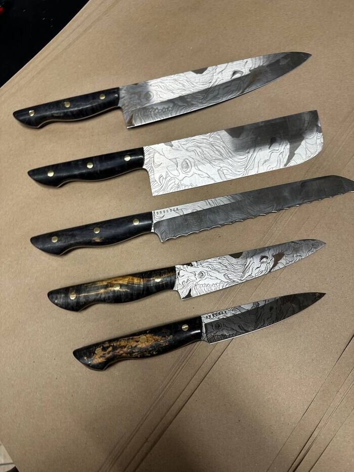 Был запрос на актуальную кухню - выставляю, что есть в наличии (уже почти ничего не осталось, поэтому последний пост на ближайшее время) По вопросам приобретения и прочим пишите в тг @babakinstore. 1) Кухонный набор «Макабр»: сталь АУС10со, рукоять стабилизированная карельская берёза. 28.000 За весь набор. 2) Тройка кухонная, сталь 75х14мф, рукоять стабилизированная карельская берёза 14.500. 3) Пара для стейков (Такие же ТТХ) Каждая пара по 7000. 4) Шеф ножи мини (клинок 155мм), сталь 75х14мф. 4500 Любой. 5) Шеф ножи «Кайо», клинок 200мм, сталь Аус10со, рукоять карельская берёза и гибрид. 7000. 6) Шеф ножи «Морковь», клинок 200мм, сталь Аус10со, рукоять карельская берёза и гибрид. 7000. 7) Шеы нож «Карп», клинок 175мм, сталь Аус10со, рукоять карельская берёза. 7500 За любой. Всем острых ощущений! Пост автора Babakin. Комментарии к посту на сайте Пикабу.