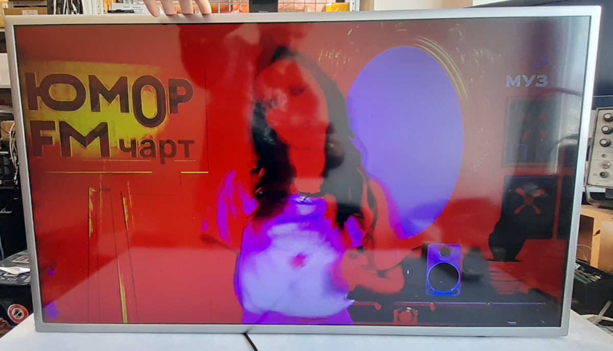 Всем здравствуйте! Сегодня у нас на ремонте телевизор Samsung ue40k5550bu с диагнозом плохое изображение, на экране всё размазано, цвета не естественные, изображение тормозит. И при переключении канала или источника сигнала, на некоторое время остаётся след от предыдущего изображения. Ну в общем интересно :) Включил, проверил вот такая картинка. Ну в общем пока непонятно что и как, будем пробовать. Смотрим что внутри сего девайса. Обычный набор. Майн плата bn41-02535b Блок питания bn44-00871a доработка подсветки будет описана в следующей статье :) T-con runtk5538tp Для начала как обычно решил по отстёгивать "шлейки". Сначала справа. Изображение вот такое. Потом слева. Изображение такое. Нда...дело пока не в бобине. Потом прозвонил керамику и диоды на планках матрицы. Но там ничего подозрительного не вызвонилось. От матрицы можно пока отстать. Посмотрим что там у нас с напряжениями на t-con. В открытом доступе есть фото с напряжениями. Ну и начал я тыкать по всем точкам. Все напря