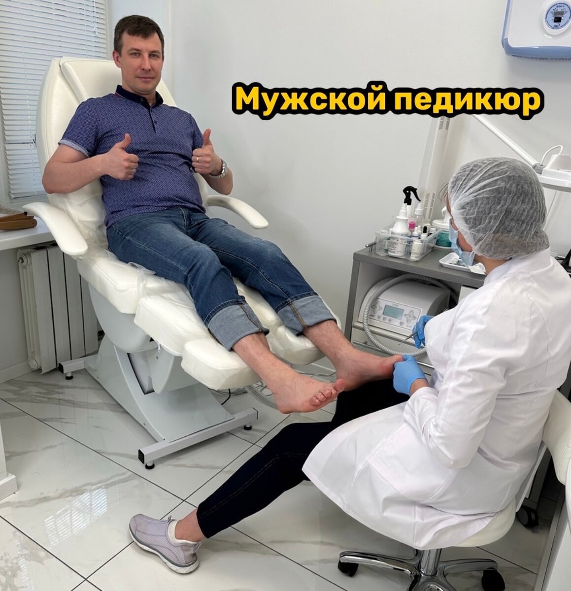 Это гигиенический уход за вашими стопами, обработка ногтей и кожи вокруг. А также возможность обработки проблемных зон, таких как: