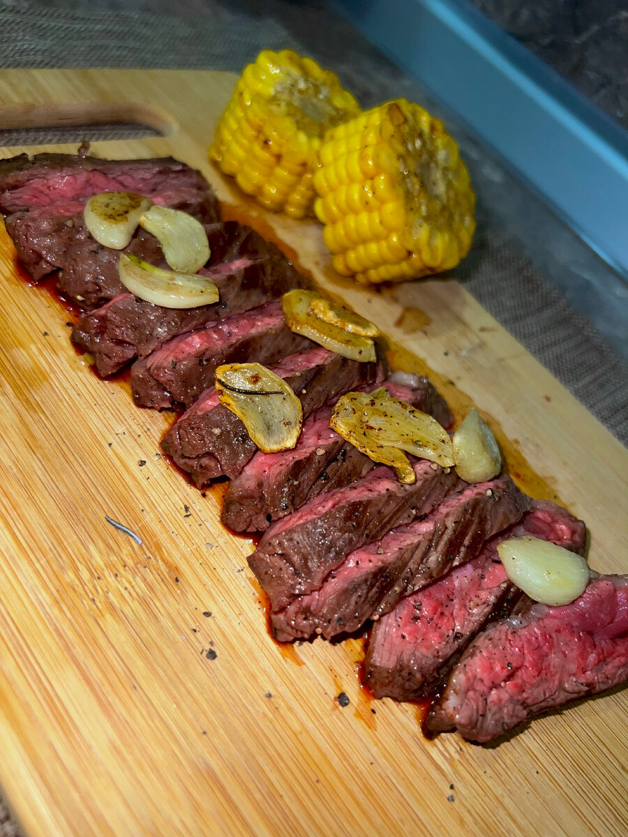 Стейк из мраморной говядины на сковороде, простой рецепт с фото