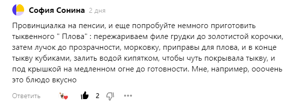 Доброго всем утра, мои дорогие! Посмотрела сегодня на календарь и удивилась в очередной раз - вот и март пролетел, а давно ли Новый год отмечали, потом весну ждали? Так и не заметим, как год пролетит. С утра у нас вчера было холодно и сыро, хорошо хоть в обед разогрело, надо огород "причесывать", кое-где сухостой еще остался, да и так.. Посмотрю на огород соседей - ну такая чистота, надо и нам подтягиваться, и когда всё успевает, работает же. Помоложе нас, правда. Ну да ладно, и мы всё сделаем, постепенно. Вчера я немного опростоволосилась. Приготовила "плов" по рецепту от Софии Сониной, а сфотографировать забыла. Точнее, была уверена, что зафиксировала результат, но в телефоне снимка нет. Так что, поверьте на слово, что у меня тоже получилось вкусно и даже красиво. Спасибо, София! Сначала мне показалось, что тыква жесткая, долго готовиться будет, но нет, много времени не понадобилось. Теперь примерно то же самое собираюсь сделать в духовке, в пакете для запекания, тыквы у нас ещё дос