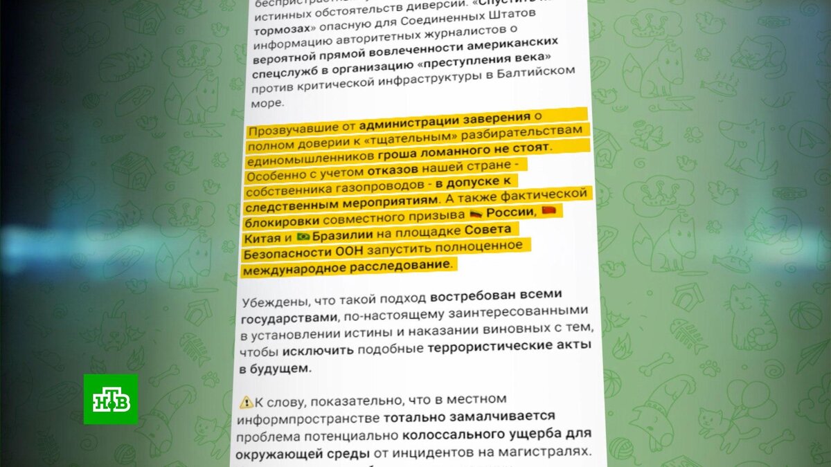 [ Смотреть видео на сайте НТВ ] В российском посольстве ответили на заявления Белого дома о том, почему США не заинтересованы в расследовании диверсий на газопроводах в Балтийском море. Власти США пытаются сделать все возможное, чтобы препятствовать проведению независимого расследования подрыва газопроводов «Северный поток» и «Северный поток — 2». Об этом говорится в заявлении посольства РФ в Вашингтоне. Из заявления посольства РФ в США: «Обратили внимание на очередные заявления Белого дома о якобы достаточности ведущихся европейскими странами „независимых“ расследований подрывов международных газотранспортных магистралей „Северный поток“. Видим в этом очевидную попытку местных властей спрятаться за действиями союзников. Сделать все возможное, лишь бы не дать хода беспристрастным усилиям по установлению истинных обстоятельств диверсии. „Спустить на тормозах“ опасную для Соединенных Штатов информацию авторитетных журналистов о вероятной прямой вовлеченности американских спецслужб в орга
