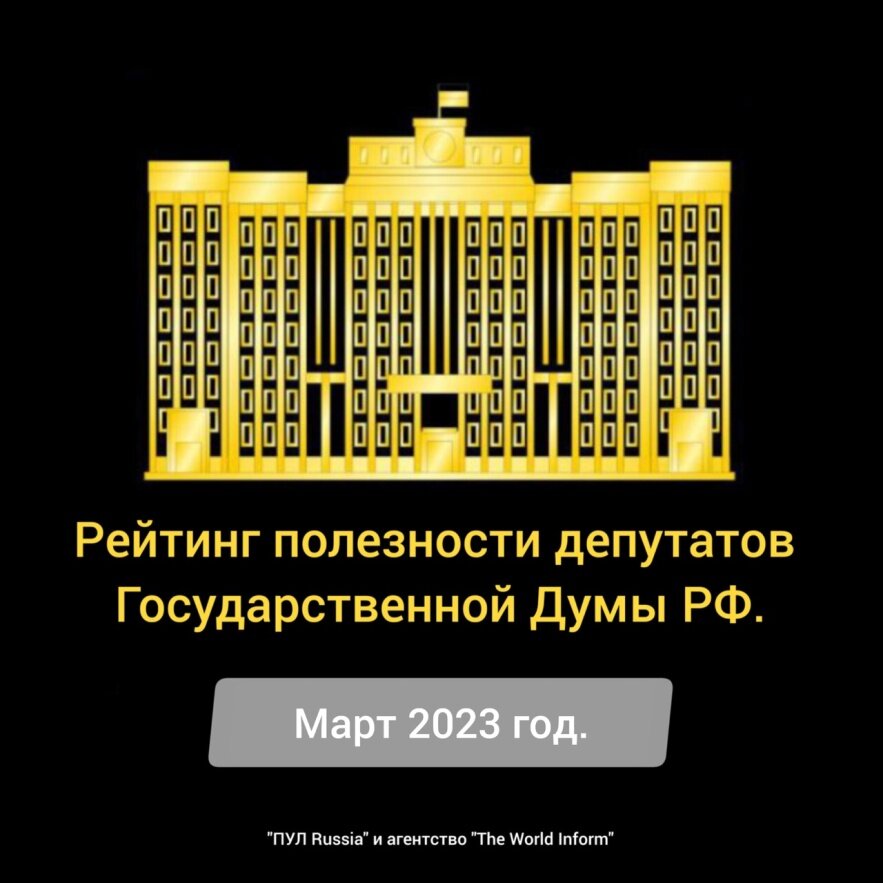 «ПУЛ Telegram» и «The World Inform» опубликовали результаты рейтинга полезных депутатов Государственной думы по итогам марта 2023 года. С результатами предыдущих месяцев, и за изменениями, вы можете следить на постоянной странице. Для доступа ко всем бесплатным функциям платформы создайте аккаунт, или авторизуйтесь.