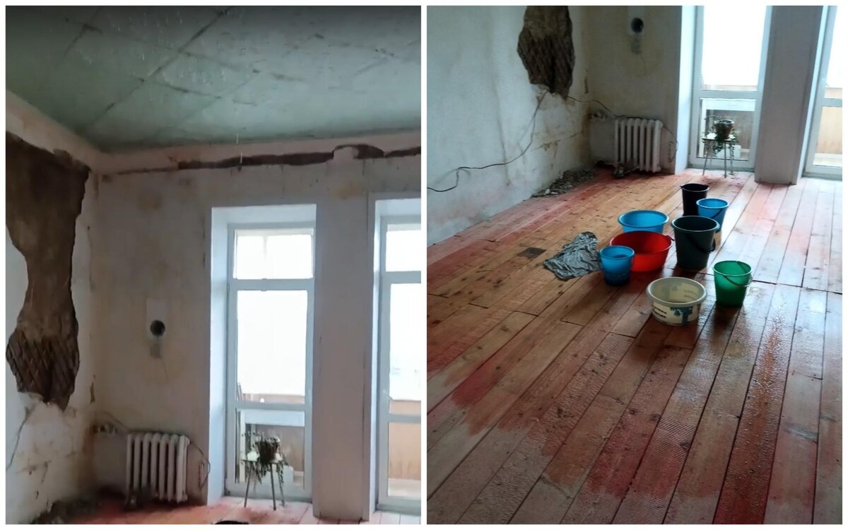 На верхнем этаже общежития с заменённой крышей в Новосибирске протёк потолок. В квартирах на третьем этаже общежития на Станционной, 8, протек потолок. Об этом сообщили сами жильцы в группе «АСТ-54» Вконтакте. В октябре 2022 года ураганный ветер сорвал крышу в общежитии на улице Станционная в Новосибирске. Власти отремонтировали крышу за счёт города и выплатили компенсации по 100 тысяч жильцам пострадавших квартир. Но за время, пока рабочие монтировали кровлю, дождь и снег скопились на чердаке. После зимы они начали таять, и из-за этого протекли потолки у жильцов третьего этажа. «Людям поменяли пол, а сейчас всё опять промокло. Пока вода течёт в одной комнате на третьем этаже и протекает на второй. Пол, конечно, никто второй раз менять не будет. Ремонт стен в комнатах после затопления, сказали, делать должны собственники за свой счёт. И ремонт коридоров тоже», — сообщает жительница Новосибирска Лариса Белаш. На видео в публикации заметно, как вода капает через плитку на потолке на дере