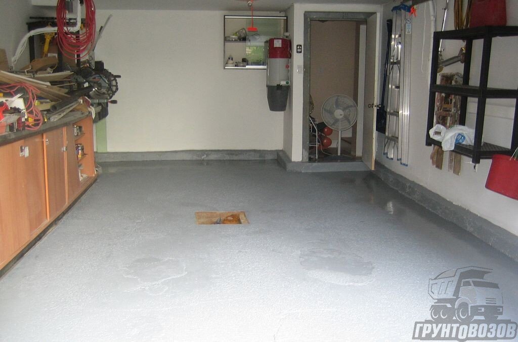 - Вы построили гараж на ленточном фундаменте и хотите оборудовать в нем пол по грунту? Чтобы избежать сырости, нужно сделать подушку под основным покрытием. Для нее можно использовать песок или щебень. Но еще лучший вариант – это тощий бетон. Он достаточно прочный, чтобы выдержать нагрузку от автомобиля и вес основного бетонного покрытия. Материал хуже пропускает воду, чем песок или щебень, поэтому надежно изолирует помещение от грунтовой влаги. Затраты на изготовление смеси не слишком высокие – вы вполне уложитесь даже в небольшой бюджет.