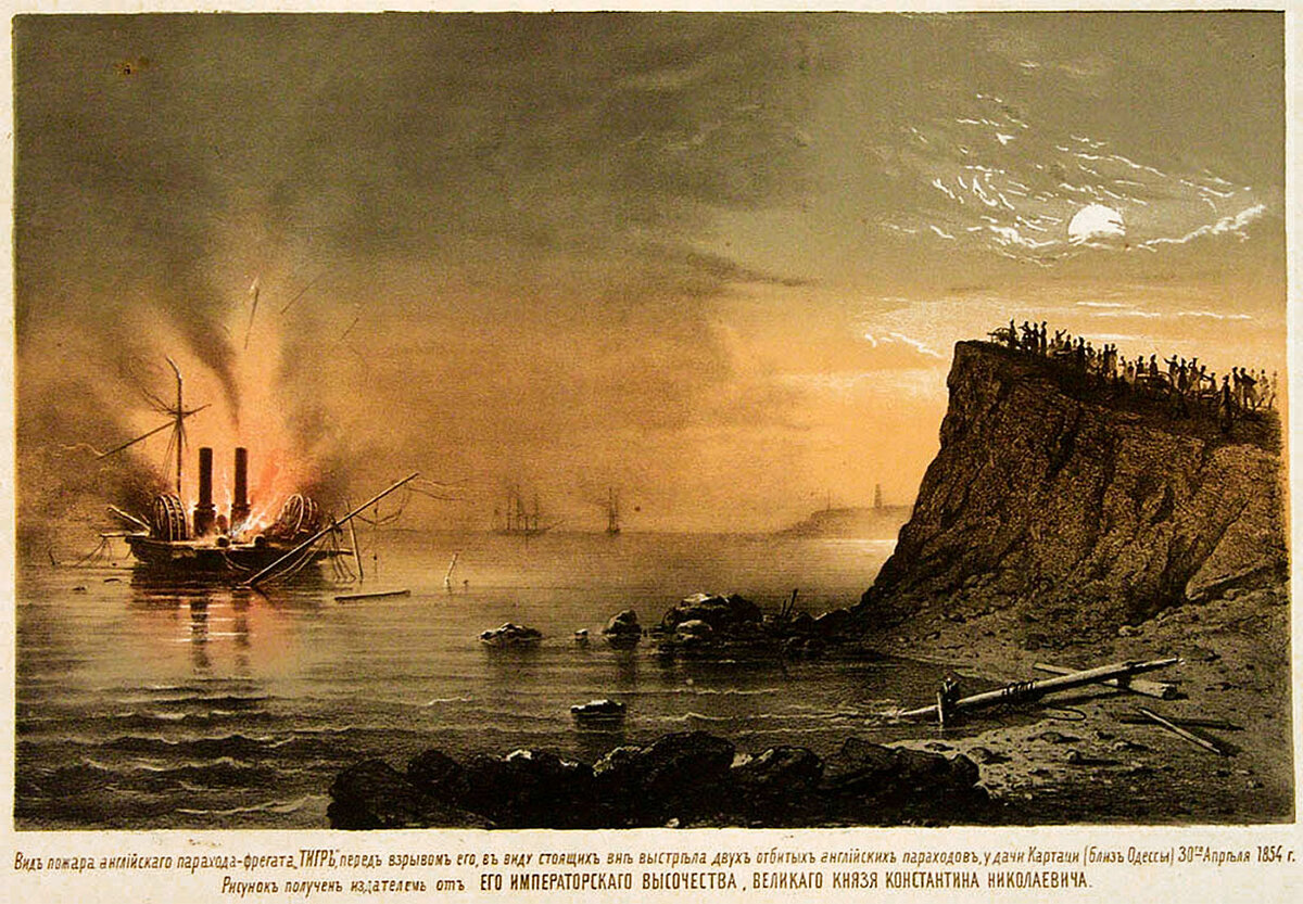 Сначала два английских судна пришли на одесский рейд и постреляли в город, пролив, разумеется, кровь и, разрушив жилища мирных граждан, а потом один из бомбардировавших фрегатов "Везувия" в компании с другим судном "Furpous" подошли поближе, полюбовались на плоды своей меткости в стрельбе, выкинули мирный флаг и передали для пленных целый кипу британских поздравлений и сожалений.