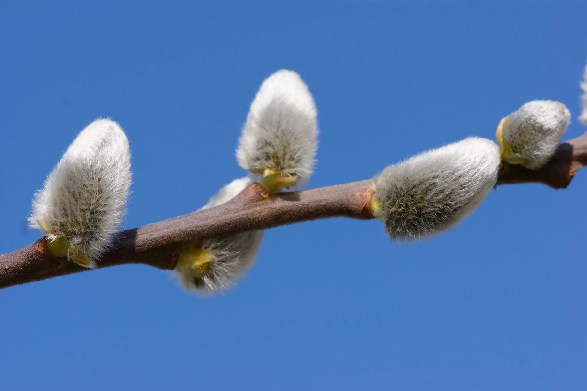 Однажды увидев вживую игрушку из вербных пушистиков, я влюбилась в этот необычный вид рукоделия. Живем мы в лесу и весной вдоль дорог и по берегам заливов ивы щедро дарят нам этот удивительный материал - серовато-голубоватые "котики", похожие по тактильным ощущениям на шерсть кролика или котёнка. Интересный факт: с немецкого языка слово, обозначающее пушистые цветы вербы (das Weidenkätzchen), дословно переводится как «вербные котята»! Принесите домой с весенней прогулки букетик любой ивы, которая набила цветы, но еще не появились желтые тычинки с пыльцой. Использовать мы будем и сами пушистики, и оставшиеся после них пруточки. В идеале, конечно, собрать букетик за сутки до творческих посиделок и не ставить его в воду, положив в сухое место. У меня букетики лежали на столе. Чуть подсохнут пушистики, но ломкими не будут. Проверяем пушистик: сжимаем его пальцами и отпускаем, дуем на него и смотрим, восстанавливается ли "мех". Если да - все отлично, приступаем к работе и руками отрываем