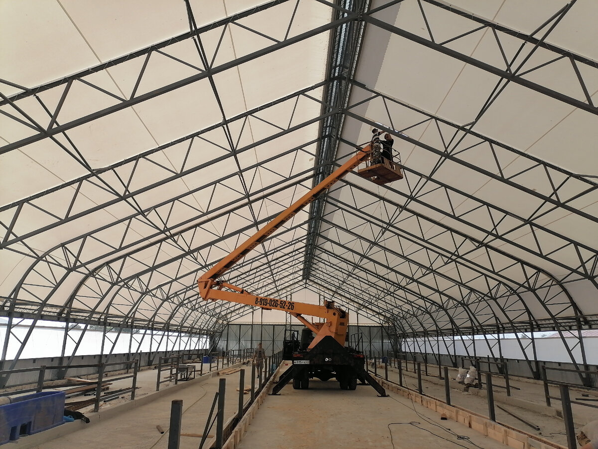 - Техническое обслуживание ангаров, включая протяжку болтовых соединений, тросовых растяжек и натяжку тентов.