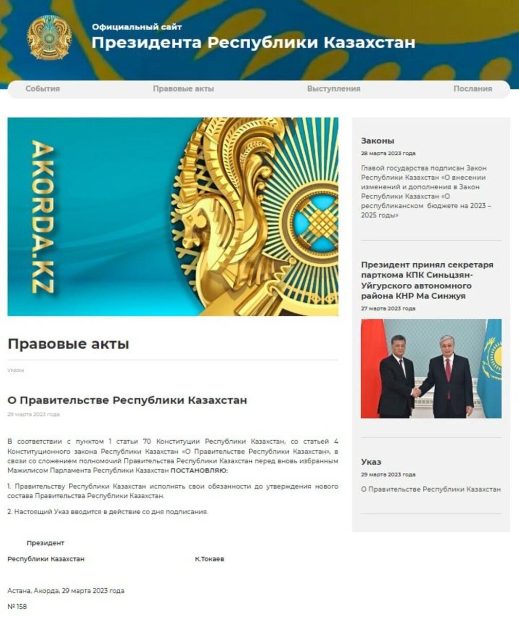 Правительство Казахстана ушло в отставку в соответствии с новой Конституцией