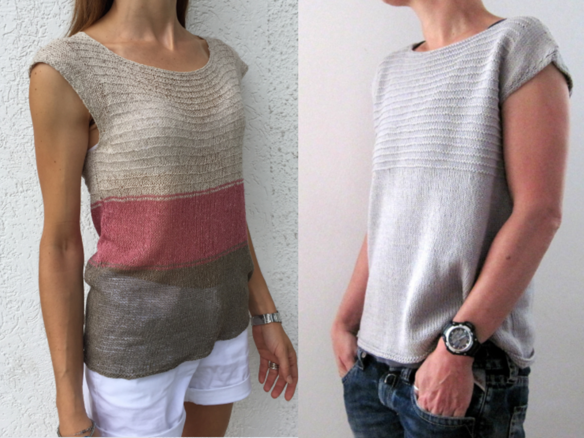 Сначала эта модель совсем не привлекла моего внимания, наоборот — я перевернула страницу даже с удовольствием. Вернулась к описанию, увидев фото её разноцветного варианта — как разнообразно выглядит одна и та же модель! Модель называется Darlene, её автор - Изабель Кремер (Isabell Kraemer). Топ Дарлин от Изабель Кремер Как выглядит Главная особенность модели в том, что выполнена сверху без единого шва. Для этого вам придётся связать плечи укороченными рядами, далее вязать до окончания пройм поворотными рядами, далее до самой нижней планки — круговыми. Процесс описан довольно подробно, но не занудно, даже захватывающе (или мне так показалось? 😊) Модель связана с ростком и плечевыми скосами. Попробуем повторить? ;) Выкройка Выкройка даёт понимание конструкции. С удовольствием публикую её в начале описания! Размеры Окружность груди готового изделия: 87 (92, 99,5, 105,5, 112,5, 120,