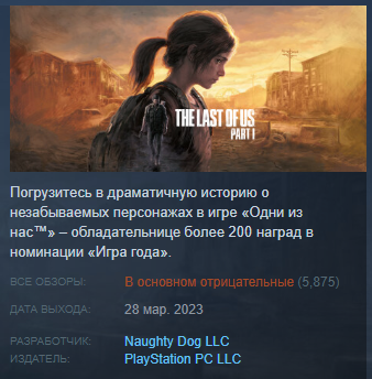 The Last of Us Part I - это приключенческая игра в жанре выживания, разработанная Naughty Dog и выпущенная в 2013 году эксклюзивно для игровой консоли PlayStation 3. Игра была переиздана на PlayStation 4 в 2014 году. И только сейчас стала доступна для владельцев ПК. История игры разворачивается в постапокалиптическом мире, пораженном эпидемией, которая превратила большую часть населения в инфицированных монстров. Игрок управляет персонажем по имени Джоэл, который должен доставить молодую девушку по имени Элли через разрушенные зоны и инфицированные земли до тайного лагеря Огня, где находятся оставшиеся в живых люди. Одной из причин, по которой игра стала такой популярной, является уникальный сюжет. История, разворачивающаяся в игре, не только описывает выживание в мире после конца света, но и исследует сложные эмоциональные темы, такие как любовь, потеря, предательство и надежда. Персонажи в игре очень хорошо проработаны и имеют глубокие личностные характеристики, что делает игроков во
