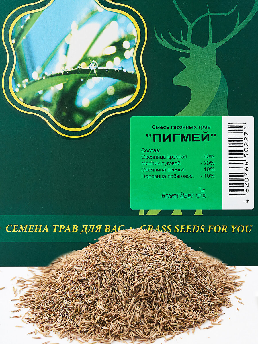 "Пигмей" - газонная травосмесь, которая создает тонколистный, низкорастущий, идеальный газон. Травосмесь "Пигмей" применяется для создания высокодекоративного низкорастущего газона в парках, на приусадебных участках, лужайках для отдыха. Медленно отрастает, не требует частого скашивания. Высота скашивания 2-3 см. Норма высева 2-4 кг на 100 м2. Регулярные подкормки удобрениями после каждого третьего укоса стабилизируют цвет газона на всех типах почв. Овсяница красная 65% Мятлик луговой 20% Овсяница овечья 10% Полевица побегоносная 5%