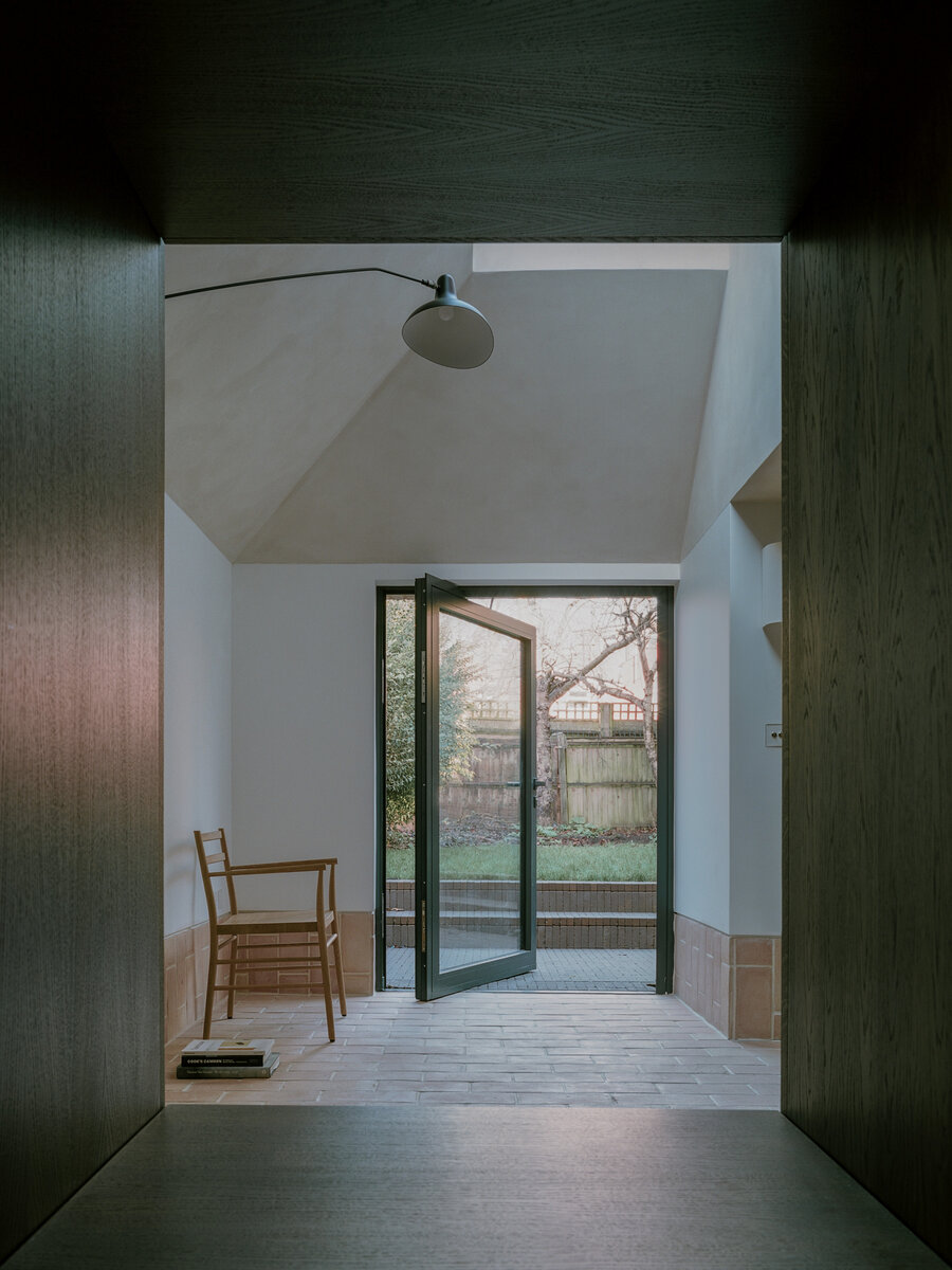 А что если из предыдущей концепции мы совсем уберем декор и цветовые акценты, оставив только белые стены, натуральные материалы и композицию, созданную пространством и естественным светом. Мы получим интерьер контекстно создающий натуральный пейзаж. В таком пространстве максимально комфортно жить и работать. Интерьер целиком лишен ментальных крючков и петелек в виде предметов декора, поэтому не создает атмосферы для ностальгии и меланхолии. За счет зенитного окна в центре помещения, как в настоящем пейзаже, основным участником настроения становится погода - в пасмурную погоду пейзаж интерьера становится дождливым, деревянные элементы отдают зелёные оттенки, стены становятся серым продолжением неба. Но стоит выйти солнцу - в интерьере появятся прямые лучи, стены приобретут теплый оттенок, дерево приблизится к шоколадным оттенкам. Натуральное окружение имеет больше нюансов и тонов, чем искусственные декорации, созданные чтобы выдерживать только одно пластиковое настроение.