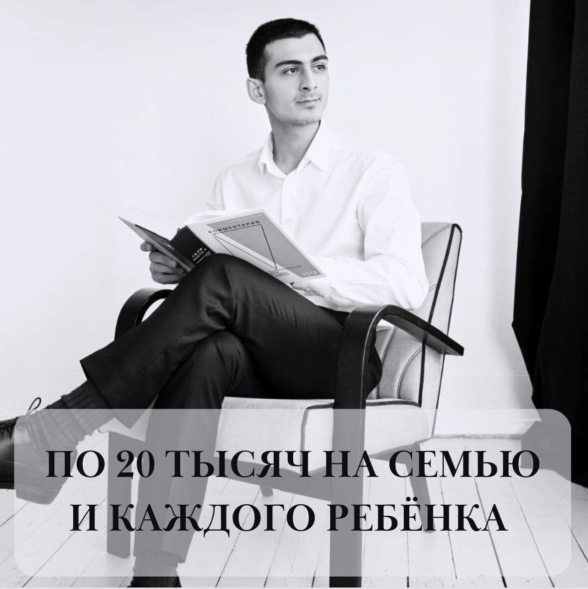 🔷Базовая выплата - 20 тысяч рублей, если в семье один ребенок - еще плюс 20 тысяч, два ребенка - еще плюс 20 тысяч. Если семья - супруги и двое детей, соответственно, суммарная выплата будет составлять 60 тысяч рублей