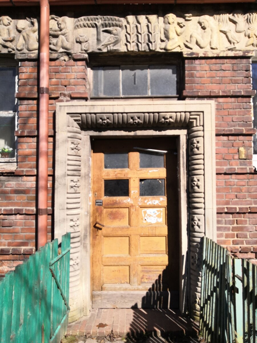 В Советске мне постоянно хочется изучать улочки, находить что-то новое, любоваться архитектурой. Так и тянет на прогулку по неизведанным местам. Ведь Советск имеет очень богатую историю в Калининградской области. Тут много исторических и уникальных зданий. Так вот мое любопытство и мои ноги, которым постоянно хочется в путь, привели меня на улицу Героя Советского Союза, военного летчика Николая Гастелло. Когда еще Советск был Тильзитом, эта улица называлась Moltke Straße. Мой взор упал на уникальное, историческое здание, а именно на необычную лепнину. На нем были вылеплены дети, цветы и животные. На каких-то фрагментах есть и пальмы. Лепниной так же оформлен вход здания. Сам дом из кирпича + рельефная штукатурка. Смотрится очень необычно и эффектно. Рядом с домом размещены палисадники жильцов, кто то выращивает урожай на грядках. От самого барельефа, конечно, не оторваться. Интересно рассматривать, прикоснуться к истории. Если честно, я не знаю, что тут было во времена Тильзита. Д
