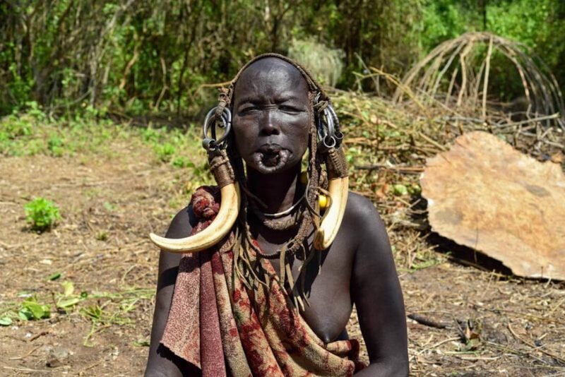 Племя Мурси – один из самых известных в долине реки Омо в Эфиопии. Отличительная черта Мурси — это губные и дольчатые пластины, которые носят женщины. Во время ритуалов инициации на нижней губе и мочках ушей молодой девушки Мурси сначала делают маленький разрез. В разрез вставляется небольшой деревянный или керамический диск, который постепенно заменяется на диски большего размера, таким образом, со временем становится возможным носить полноразмерный диск. Не у всех женщин есть губные или дольчатые диски. Говорят, что эта практика была впервые применена для того, чтобы заставить их выглядеть уродливо, когда арабские купцы постоянно совершали набеги на их деревни в поисках рабов. Но впоследствии, в некоторых источниках это объяснение было отвергнуто, поскольку исследования показывают, что пластины являются символом или выражением социального статуса. Чем больше глиняная тарелка, тем дороже женщина для замужества. Пластины изготавливаются из глины (красноватой или черной) либо дерева. Ес