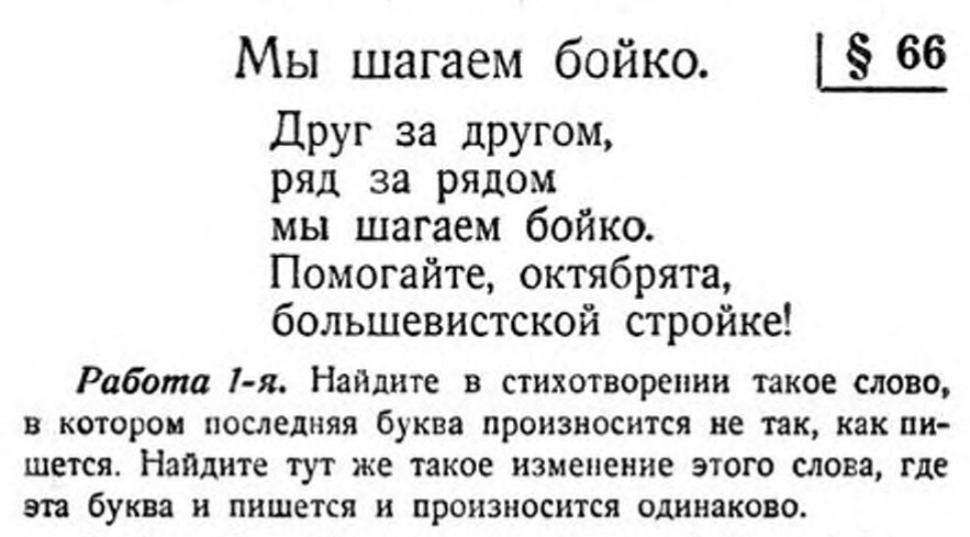 Как ты считаешь, когда было проще учиться — сейчас или в советские времена? Люди до сих пор спорят об этом до хрипоты, находя всё новые и новые аргументы. Но сегодня мы не собираемся продолжать эту дискуссию — вместо этого мы предлагаем тебе решить простую задачку для первого класса из учебника «Первые уроки русского языка», вышедшего в 1931 году. Выбери один вариант ответа. * * * * * * * * Это слово "Друг". Буква «г» в слове произносится как «к», а вот в слове «другом» — также, как пишется.
