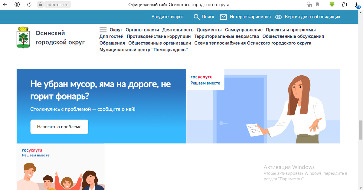 «Жалуйтесь и вас услышат». Там говорит мне сын, когда я разговариваю с ним по телефону. Но, что если пожаловаться нужно на покосившийся столб с провисшими проводами или ямы на дороге после лесовозов? Сын точно такие проблемы не решит, не его уровень. Решение есть и оно ближе, чем, кажется. Сейчас на каждом официальном сайте администрации, школ и детских садов, учреждений культуры и здравоохранения есть специальный баннер «Госуслуги. Решаем вместе». В ближайшее будущее такую систему планируют внедрить во все официальные паблики с меткой «Госорганизация» в социальных сетях. Что же это за баннер такой и для чего он нужен?