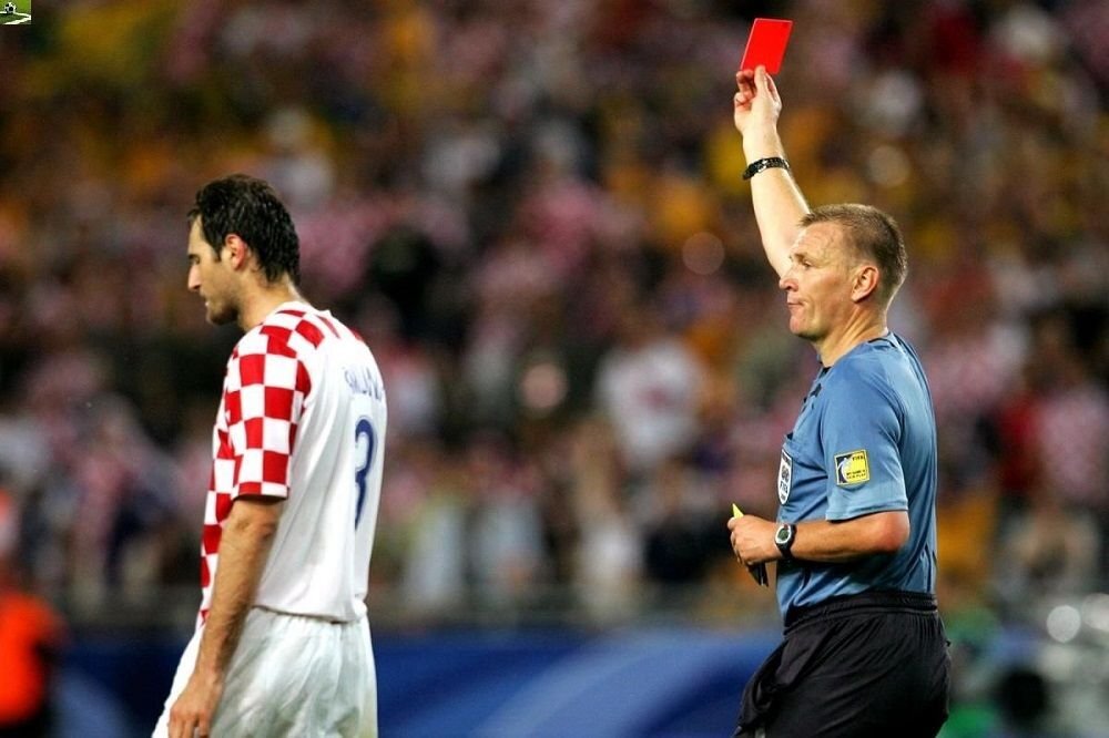 В матче группового этапа между сборными Хорватии и Австралии Грэм Полл умудрился хорватскому игроку Йосипу Шимуничу показать аж три желтые карточки. Видимо судья просто не захотел удалять игрока Хорватии, ведь у Шимунича двойное гражданство одно хорватское, а другое австралийское. Наверное, одна желтая карточка была предназначена для австралийца, а две для хорвата. Это конечно всё шутки. Тем не менее Шимунич был удален с поля за три желтые карточки, а игра завершилась вничью 2:2.