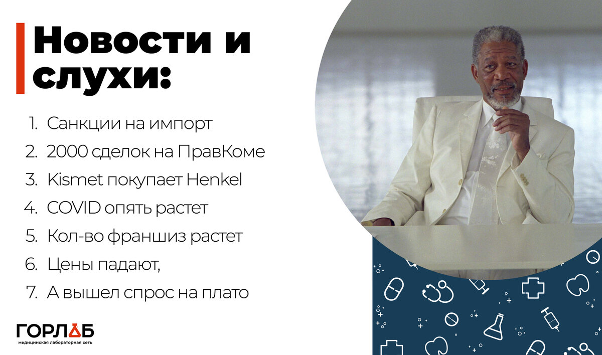кардиналовимпортеров не пострадал, и грузы едут и спокойно проходят границы, но звоночек этот явно не самый радостный. Будем надеяться, что это больше щепотки государственной бюрократии и «показуха», чем реальное желание. - А еще интересный факт, на данный момент в правительстве находится на одобрении более 2000 иностранных компаний, собственники которых готовы и/или хотят продать свои активы в РФ (то есть сделки купли-продажи находятся на комиссии). Проблема в том, что комиссия собирается всего пару раз в месяц, где в ходе одного заседания принимаются решения по 7 сделкам. Получается на то, чтобы весь этот объем «перелопатить» необходимо будет почти 8 лет) Может быть поэтому Kismet в том числе не может и/или не спешит с согласованием сделки по Инвитро? Кто его знает…