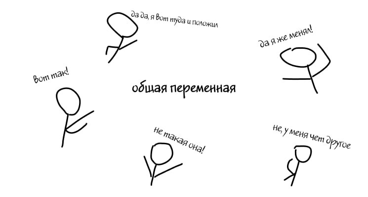 5) второй поток записывает изменения в общую память