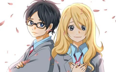 - Косэй Арима - виртуозный пианист, как говорили его наставники. С малого возраста он играл сложнейшие композиции благодаря своему чутью, он делал все точно, как прописано в нотах, даже механически. Выиграв немало конкурсов, знатоки все еще говорили, что это не талант, а дисциплина и упорство, а мальчик просто быстро справился с нагрузками. Как бы то ни было, он признавался одним из лучших пианистов в своей категории. Когда ему исполнилось 11 лет, умерла мама, являющаяся главным наставником. После этой трагедии мальчик больше не подходил к роялю, он перестал чувствовать музыку, которую играет. Он запирается в своем мире, где есть место только для двух старых друзей - Цубаки и Рёта. Ребята так сильно хотели вернуть Косэй к жизни, что однажды все-таки смогли привести его на "двойное свидание". Его избранницей стала яркая и эмоциональная Каори Миязоно, которая много шутила и не могла усидеть в кинотеатре. Устроив свою экскурсионную программу, она привела спутников в концертный зал, где сама недавно выступала. Каори - скрипачка, она играет не менее виртуозно, чем это делал Косэй. Её музыка переливается, завораживает. Так молодой человек и решает ей аккомпанировать в следующем этапе конкурса. Сможет ли он вернуться на сцену?