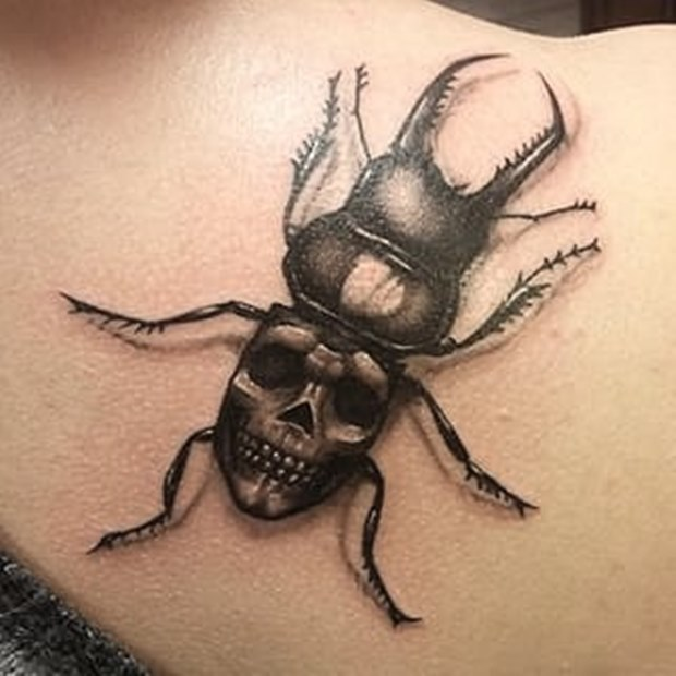 Удивительно, но у других народностей такое насекомое, как жук имеет чаще всего положительную или нейтральную характеристику. Небольшое жужжащее насекомое не может сильно навредить. Оно занято своими заботами и редко «переходит дорогу» человеку. В Древнем Египте жука и вовсе символизировали с бессмертием, зарождением жизни, осуществлением глобальных планов. В европейских странах жуки и вовсе почитаются и считаются магнитом удачи, оберегом от сглаза и порчи. Наряду с этим в нашей стране жукам придают негативные понятия. Это связано с тем, что в тюремной живописи еще в середине прошлого века стали активно использовать образ жука. У зэков это существо означает ловкость, умение проникать в самые узкие щели. Так говорят и ворах-карманниках, их ловких пальцах. Какому типу жесткокрылых относится изображенный жук (скарабей, майский хрущ, жук-носорог) значения не имеет. Но тем не менее особую популярность снискал жук-носорог. Его эффектный рог символизирует опасность. Владелец такой тату как бы