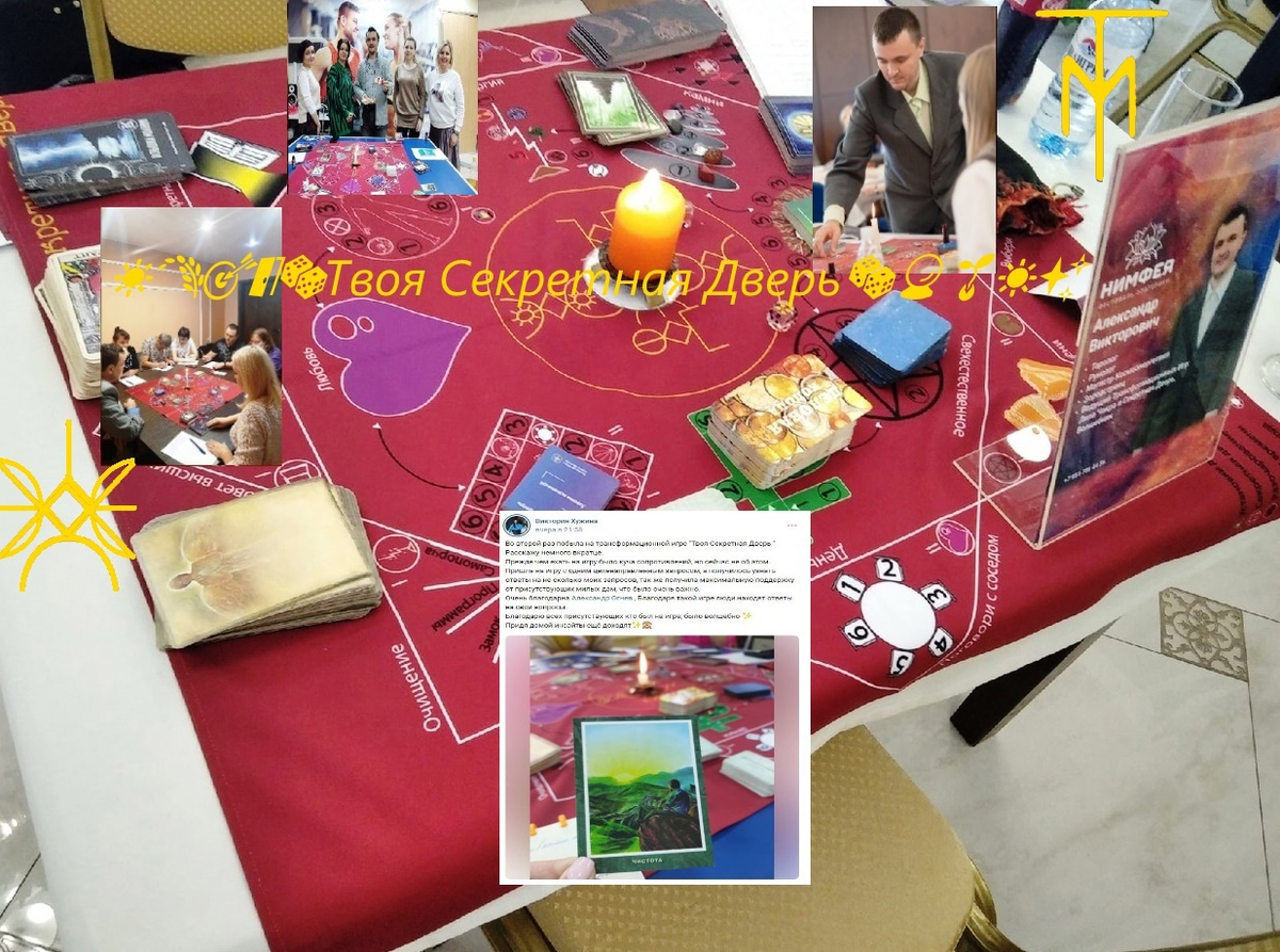 💎Давно хотела сходить на трансформационную игру "Твоя секретная дверь". Собрались весьма спонтанно.... Играли маленькой группой, поэтому удалось глубоко проработать вопросы: родовые программы, денежные установки, магические и энергетические воздействия и др. Благодарю Александр за игру и ценные пояснения. К сожалению не доиграли, но закончили на позитивной ноте. В следующий раз думаю надо делать запас по времени. Мне игра показалась интереснее, чем Лила-чакра. Трактовки клеток игры более четкие и понятные. Сама игра довольно разнообразная. Рекомендую поиграть, много интересного о себе узнаете!