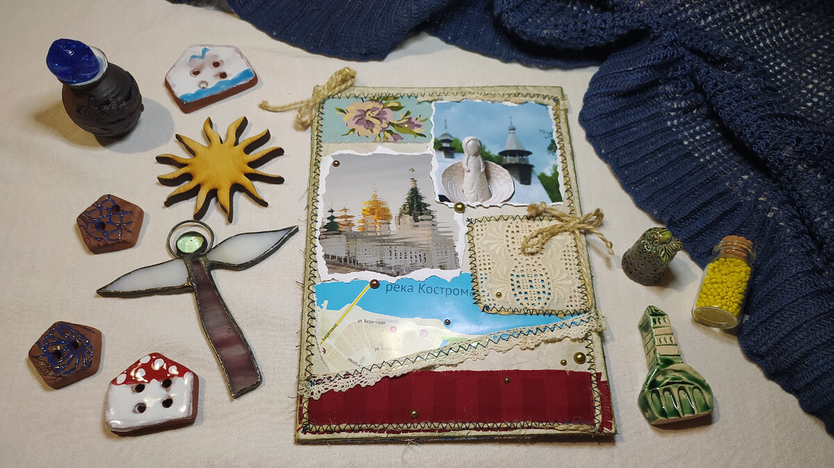 Предыдущая часть проекта, перечень материалов и варианты открыток или плотных страничек-разделителей для блокнта: