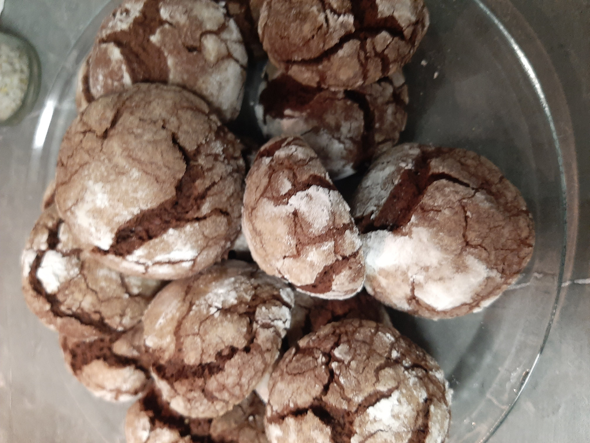 Нам понадобится: 1. Мука 160 гр. 2. Какао 60гр. 3. Разрыхлитель 1 ч.л. 4. Ванилин 1/2 ч.л 5. Сливочное масло 60 гр. 6. Яйцо 2 шт. 7. Сахарная пудра 200 гр. Для начала смешайте все сухие ингредиенты и добавьте сливочное масло (масло нужно растереть в сухих компонентах) Далее добавляем яйца и перемешиваем, можно лопаткой, можно руками, кому как удобнее)) Небходимо поставить тесто в холодильник на 15-20 минут, чтобы было удобнее скатывать в шарики. Достаем тесто, отщипываем по чуть чуть, скатываем шарик и обваливаем его в сахарной пудре, перекладываем на противень. Всего получится около 13 штучек. Ставим в духовку на 180С⁰ на 15-20 минут. Просто, быстро и очень вкусно. Печенье получается нежным и мягким, приятного аппетита ))